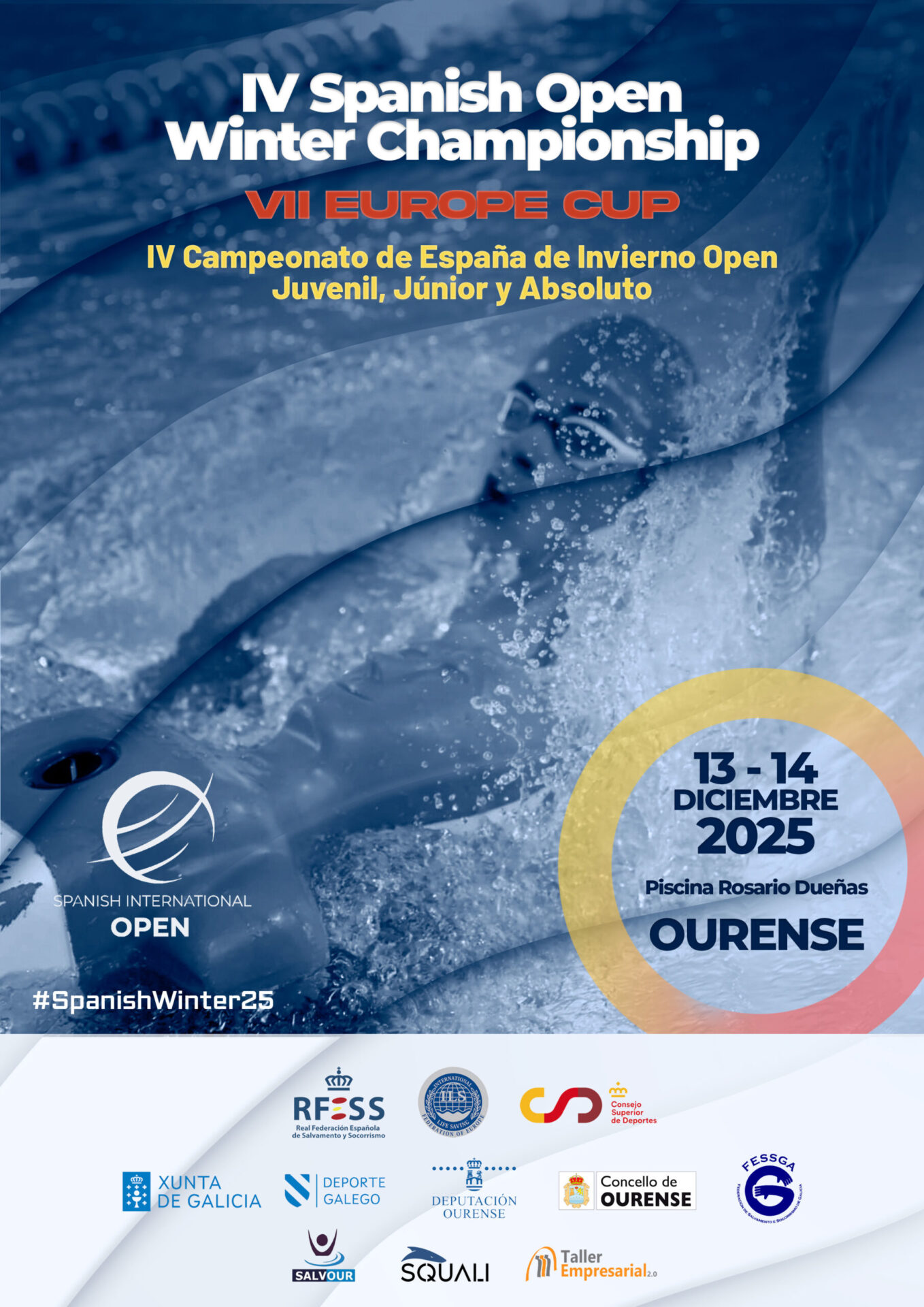 Un total de 60 socorristas de Castilla y León competirán en la IV Spanish Open Winter Championship – Campeonato de España Individual de Salvamento y Socorrismo Juvenil, Júnior y Absoluto de Invierno, #SpanishWinter25, durante los días 13 y 14 de diciembre en la Piscina Rosario Dueñas, de Ourense.