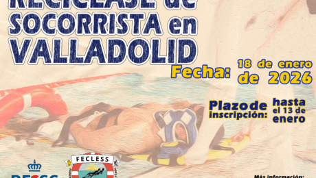 La Delegación de Salvamento y Socorrismo de Valladolid organiza un curso de Socorrista en Instalaciones Acuáticas. Inicio: 2 de enero de 2026 Plazo de inscripción: Hasta el 23 de diciembre Precio: 350 € Nº cuenta bancaria de la Federación: BANCO SANTANDER ES89 0049 0020 5521 1199 8973 DOCUMENTACIÓN NECESARIA PARA REALIZAR LA INSCRIPCIÓN EN EL