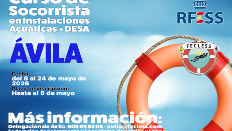Fecha de inicio del curso: 8 de mayo de 2026 Plazo de inscripción: Hasta el 5 de mayo de 2026 Precio: 350 € Nº cuenta bancaria de la Federación: BANCO SANTANDER ES89 0049 0020 5521 1199 8973 Más información en la Delegación de Salvamento y Socorrismo de Ávila. Teléfono: 605 69 54 05avila@fecless.com y escuela@fecless.com