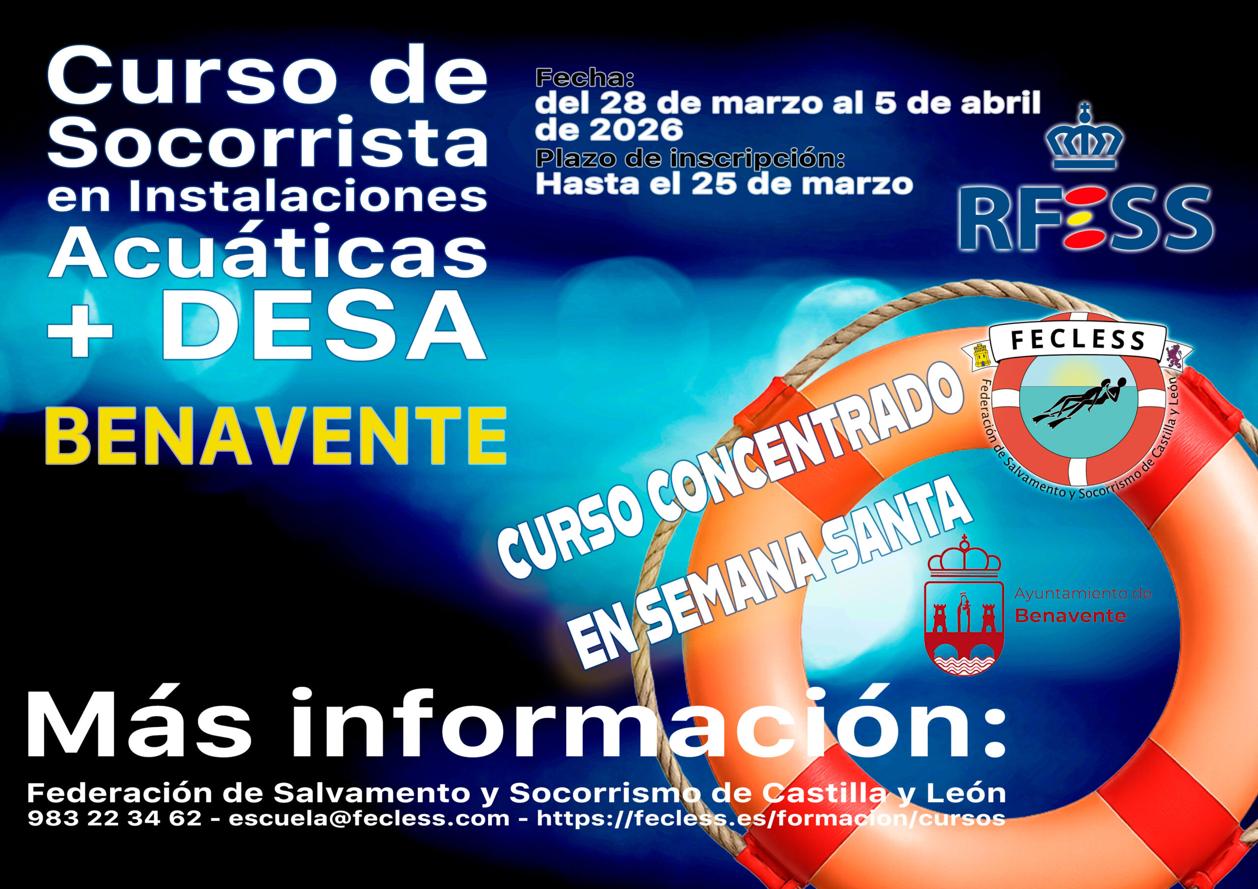 La Federación de Salvamento y Socorrismo de Castilla y León organiza un curso de Socorrista en Instalaciones Acuáticas en Benavente