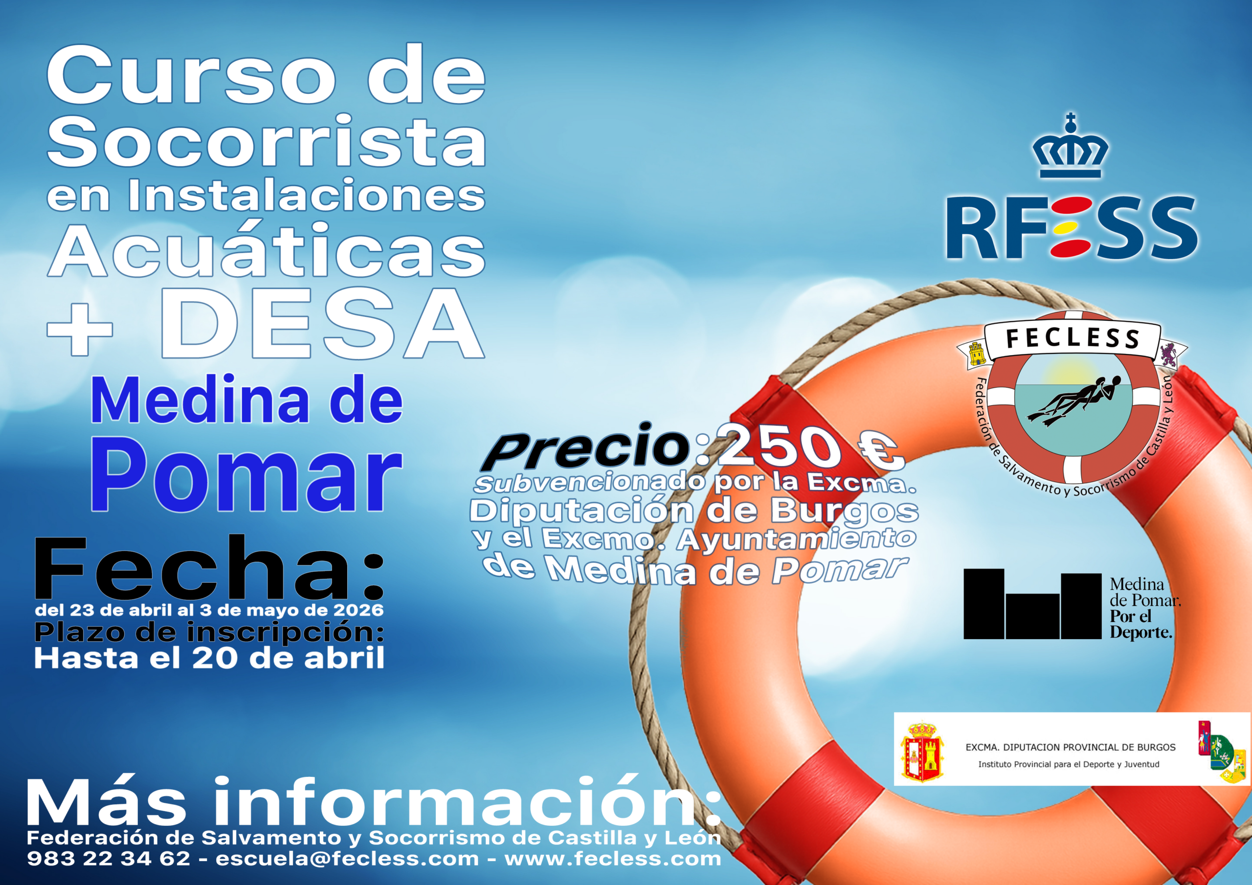 El ayuntamiento de Medina de Pomar, junto a la Federación de Salvamento y Socorrismo de Palencia organiza curso intensivo de Socorrista en Instalaciones Acuáticas