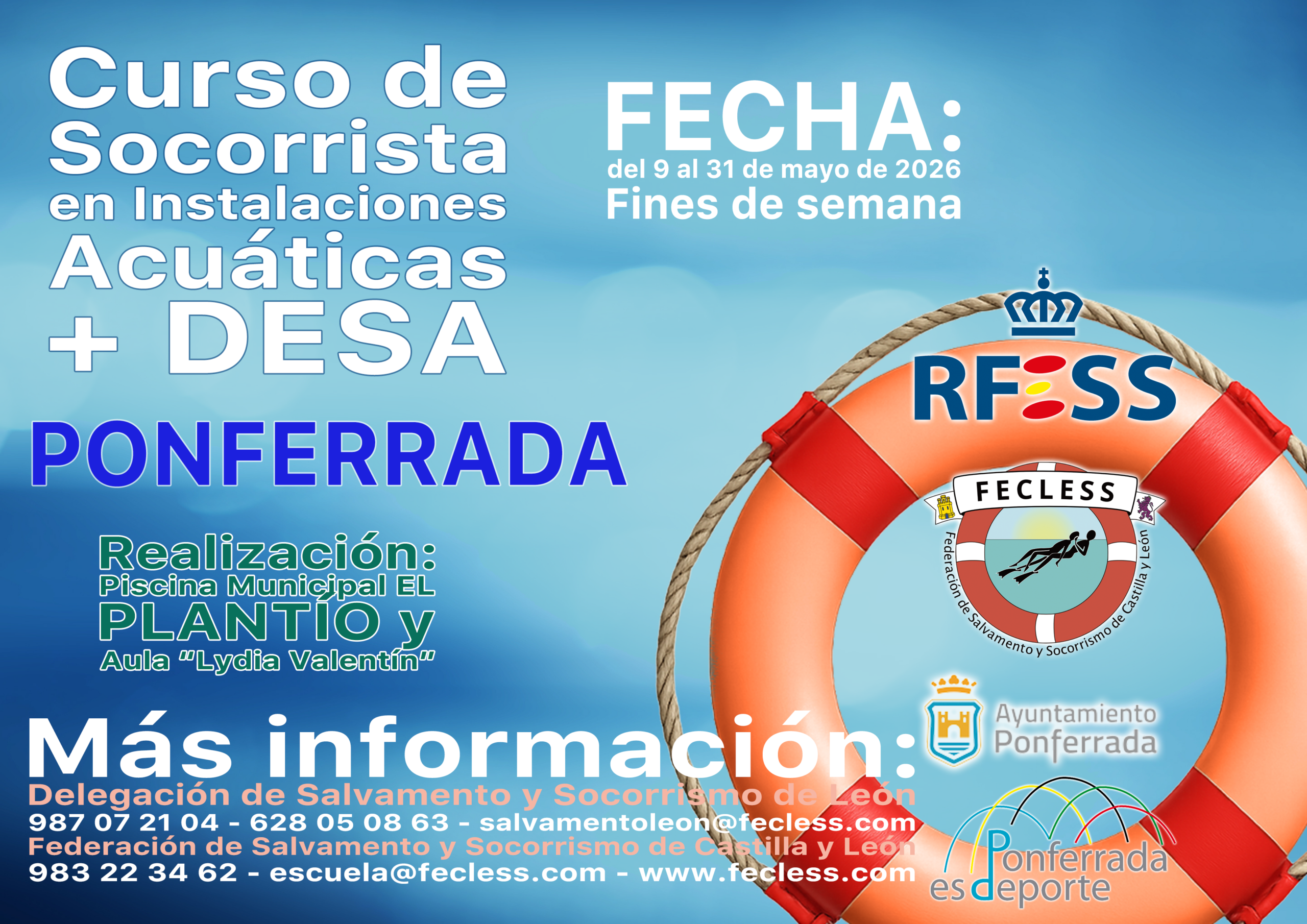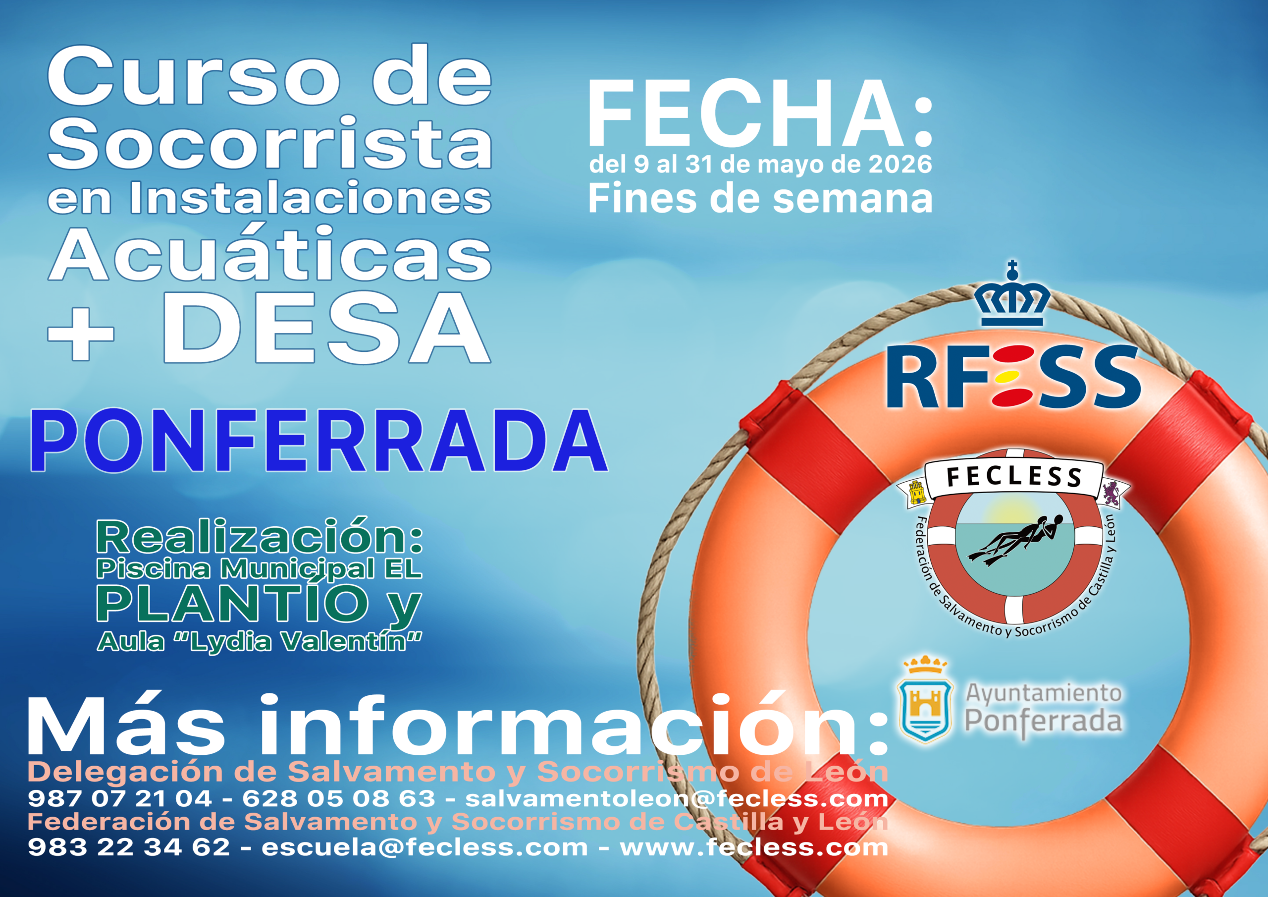 La Delegación de Salvamento y Socorrismo de León organiza el Curso de Socorrista en Instalaciones Acuáticas + Manejo de DESA en Ponferrada