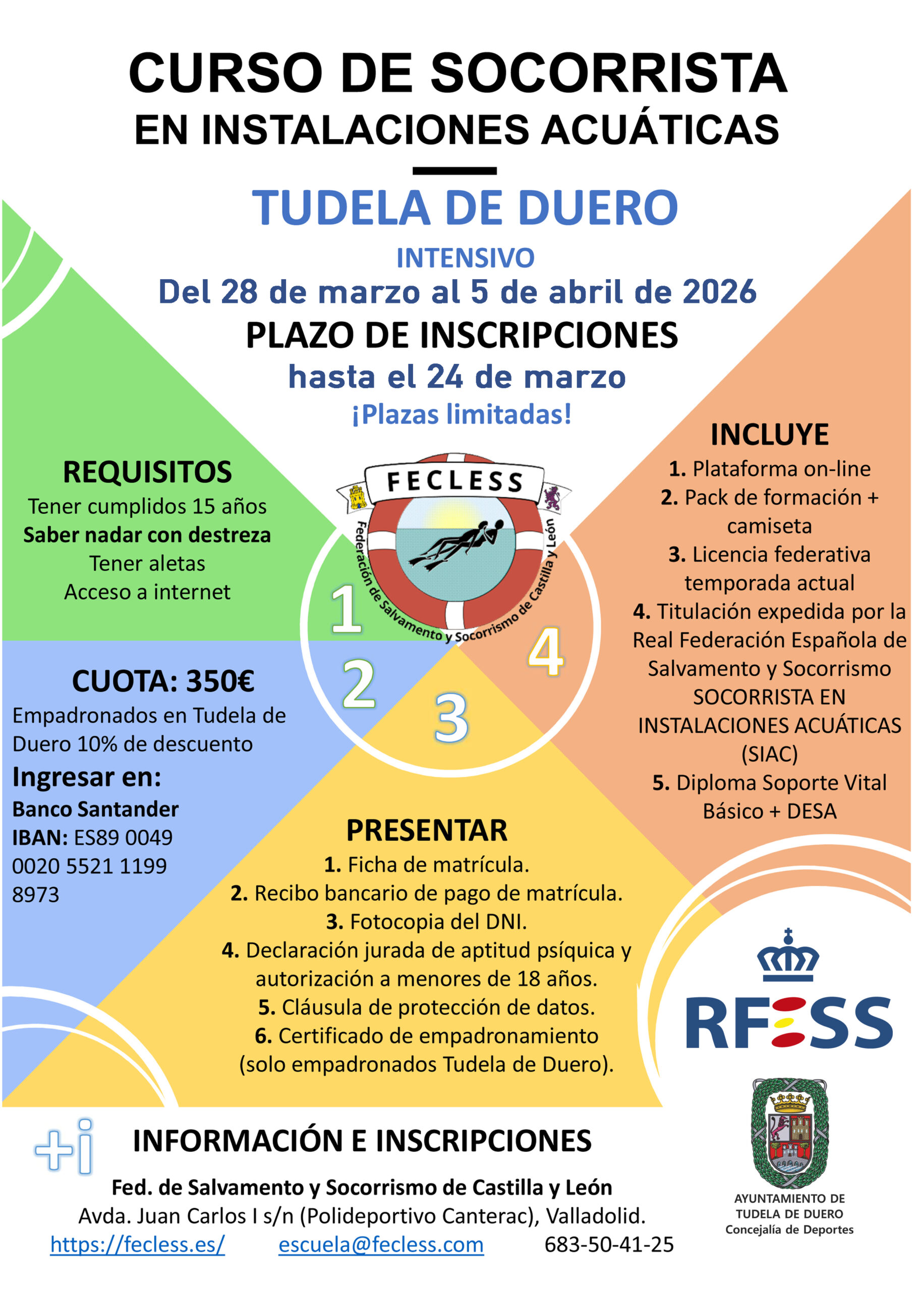 Más información en la Delegación de Salvamento y Socorrismo de Valladolid. 983 22 34 62