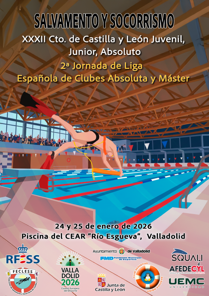 La élite del salvamento y socorrismo autonómico se medirá en el XXXII Campeonato de Castilla y León de Salvamento y Socorrismo y de la II Jornada de la Liga Española de Clubes, de las categorías juvenil, júnior y absoluta. Además, la competición albergará la II Jornada de la Liga Española de Clubes de la categoría Máster. La cita tendrá lugar en la Piscina del Centro Especializado de Alto Rendimiento Río Esgueva de Valladolid, durante el sábado 24 de enero, en sesión de tarde, y el domingo 24 de enero, en sesión de mañana y tarde.